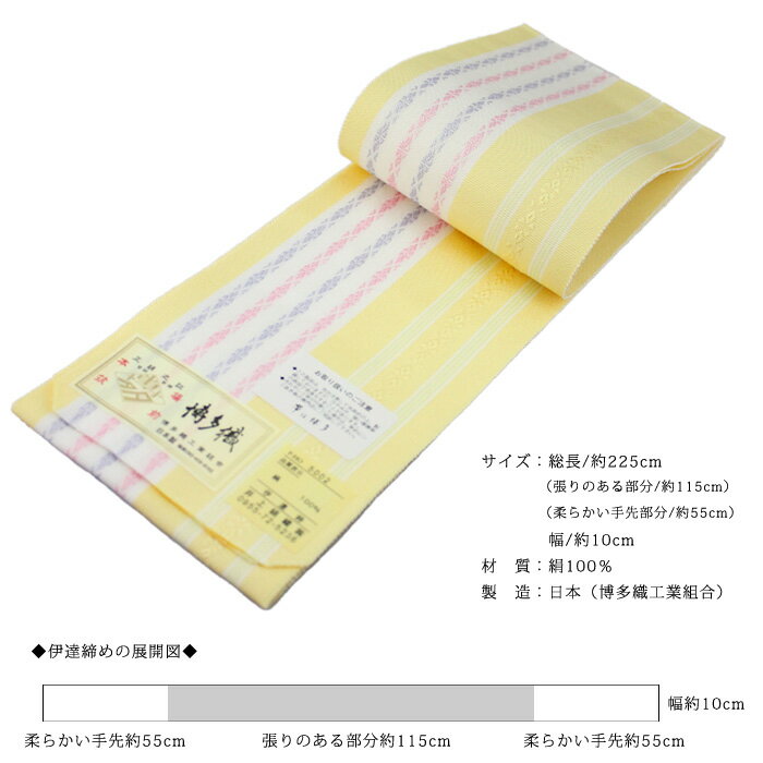 【締めやすさNO.1】本場筑前 博多織 正絹伊達締め(黄系07)◆メール便送料無料◆着物への馴染みも良く、しっかりとした締め心地で定評!伊達締めに迷ったら、これでOK!